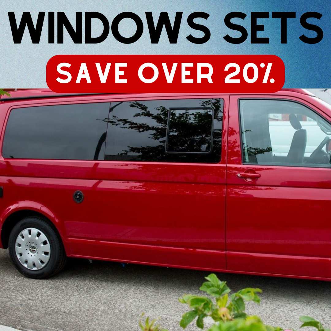 1 Left Fixed + 1 Right Opening Side Window + Fitting Kit for VW Transporter T5 to T6.1 (2003-2024)